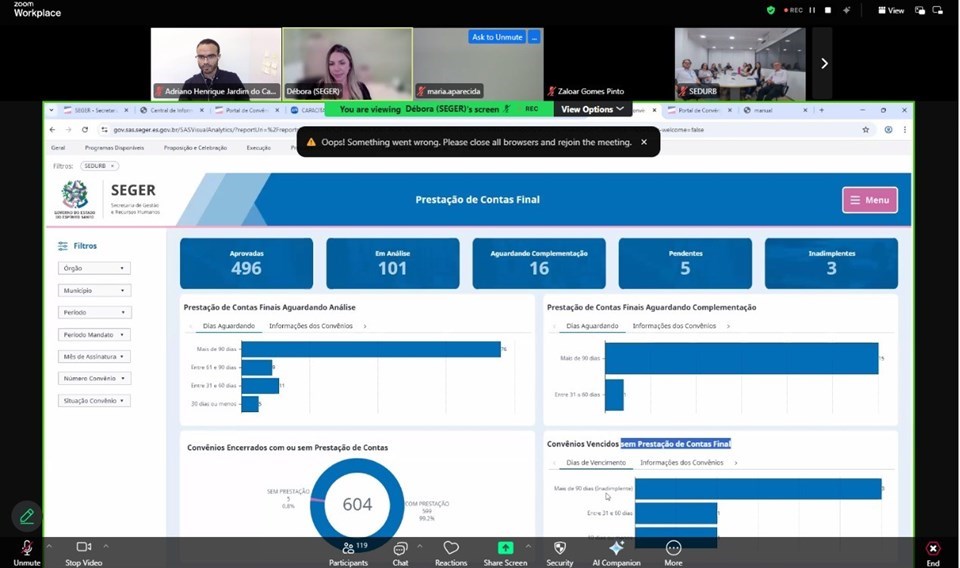 A Secretaria de Gestão e Recursos Humanos (Seger) realizou, nessa quarta-feira (08), uma capacitação on-line para cerca de 120 servidores de órgãos do Poder Executivo Estadual sobre o uso do novo painel gerencial de convênios. A ferramenta é destinada a gestores e técnicos responsáveis pelo acompanhamento das parcerias entre o Estado e os municípios.